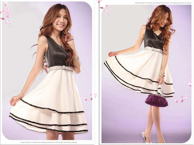 YE 0111 (9128)韩版甜美绸缎滚边裙